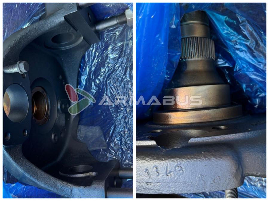 Шарнир оси левый 683.40-3110-031 представляет собой поворотный кулак левый и применяется на передних мостах грузовых автомобилей Ивеко и Урал с передними мостами РАБА.